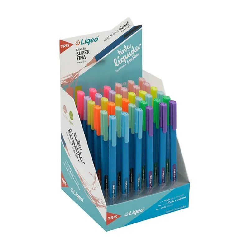 Traço 0.4mmTinta líquida tecnologia Free FlowRende até a última gotaTraço fluído e uniformeCores intensasCorpo emborrachadoNível de tinta visível