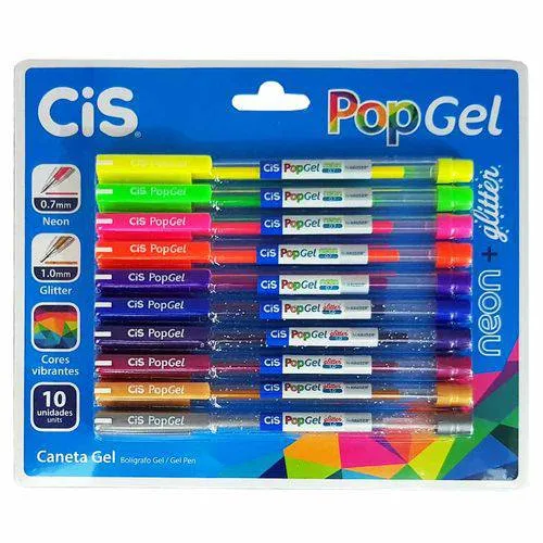 CANETA ESFEROGRÁFICA POP GEL BLISTER C/10 SORTIDAS NEON + GLITTER