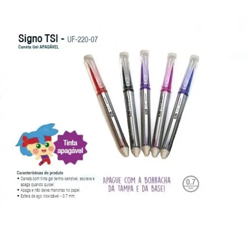Caneta signo tsi que escreve e apaga, com tinta gel termo-sensível. Apaga e